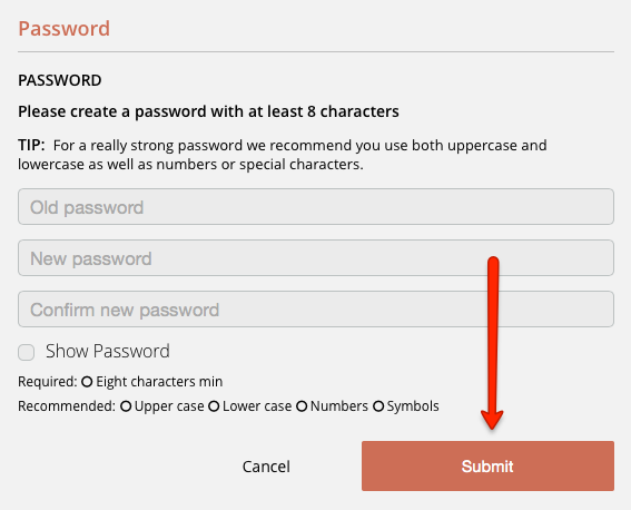 Update your password as per the recommendations shown below: